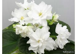 Огромные махровые белые цветы цветут пышным букетом-шапкой над красивой выставочной изумрудной розеткой из зубчатых, слегка стёганых, листиков. Очень длительное цветение! Нажмите на корзину, чтобы положить Фиалка ЕК-Светлое Воскресенье в вашу корзину