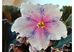 Крупные белые цветы звёзды с розовым глазком и сиреневым фэнтези по цветам в виде штришков. Цветоносы хорошие. Шапочное цветение легко получается. Розетка очень компактная из среднезелёных фестончатых листьев с окаймляющей бежево розовой пестролистностью. Нажмите на корзину, чтобы положить Фиалка Dn-Love Time в вашу корзину