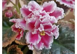 Крупные махровые цветы, с красно-малиновыми напечатками и белыми волнистыми краями. Яркая пестролистная розетка, с розоватыми участками пестролистности. Нажмите на корзину, чтобы положить Фиалка ВаТ-Феншуй в вашу корзину