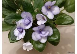 Белые цветочки фиалковой формы с синим глазком и вариативными синими тенями. Гладкие средне-зеленые листики.Полумини трейлер Нажмите на корзину, чтобы положить Фиалка-трейлер ГЕА-В Облаках в вашу корзину