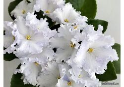 Фиалка РМ-Астурийская Принцесса спорт Крупные махровые белые цветы с малиновой каймой напылением и осветленным краем. Возможны варианты цветения, когда малиновое напыление распределяется по всему цветку. Стандартная розетка, зеленые листья, цвет листье...
